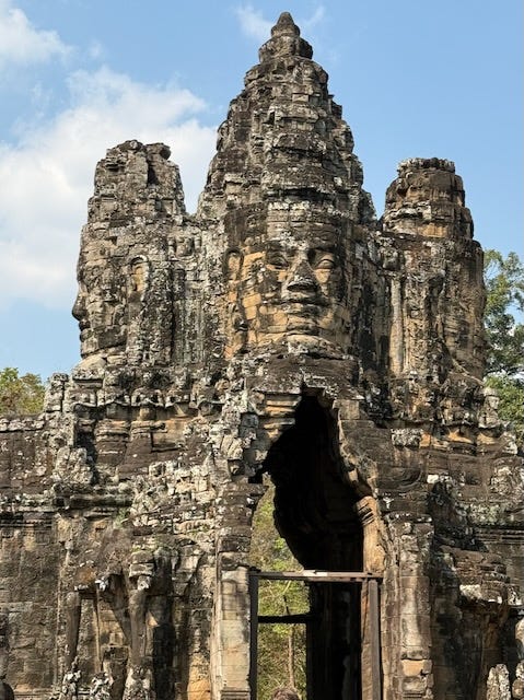 Angkor Wat (above), which dates from the 12th century, is only one of the many temples and temple complexes on the site, the other familiar name being Angkor Thom, whose entrance is even more iconic.