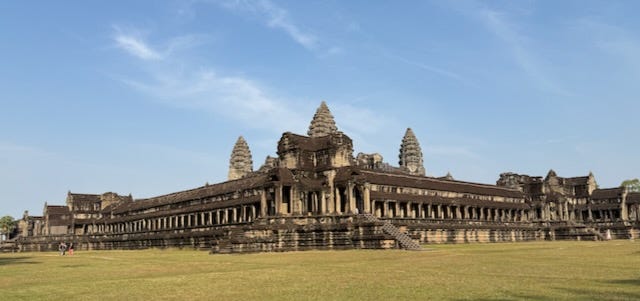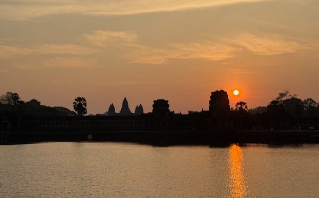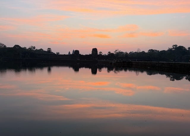 It’s 5.30 am in the morning and we’re sitting on a wall waiting for the sun to rise over Angkor Wat.