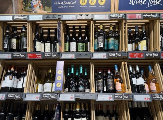 Anyway it’s back to reality and since I owe you some wine recommendations big-time I drove over to Lidl and picked up a random selection of bottles.